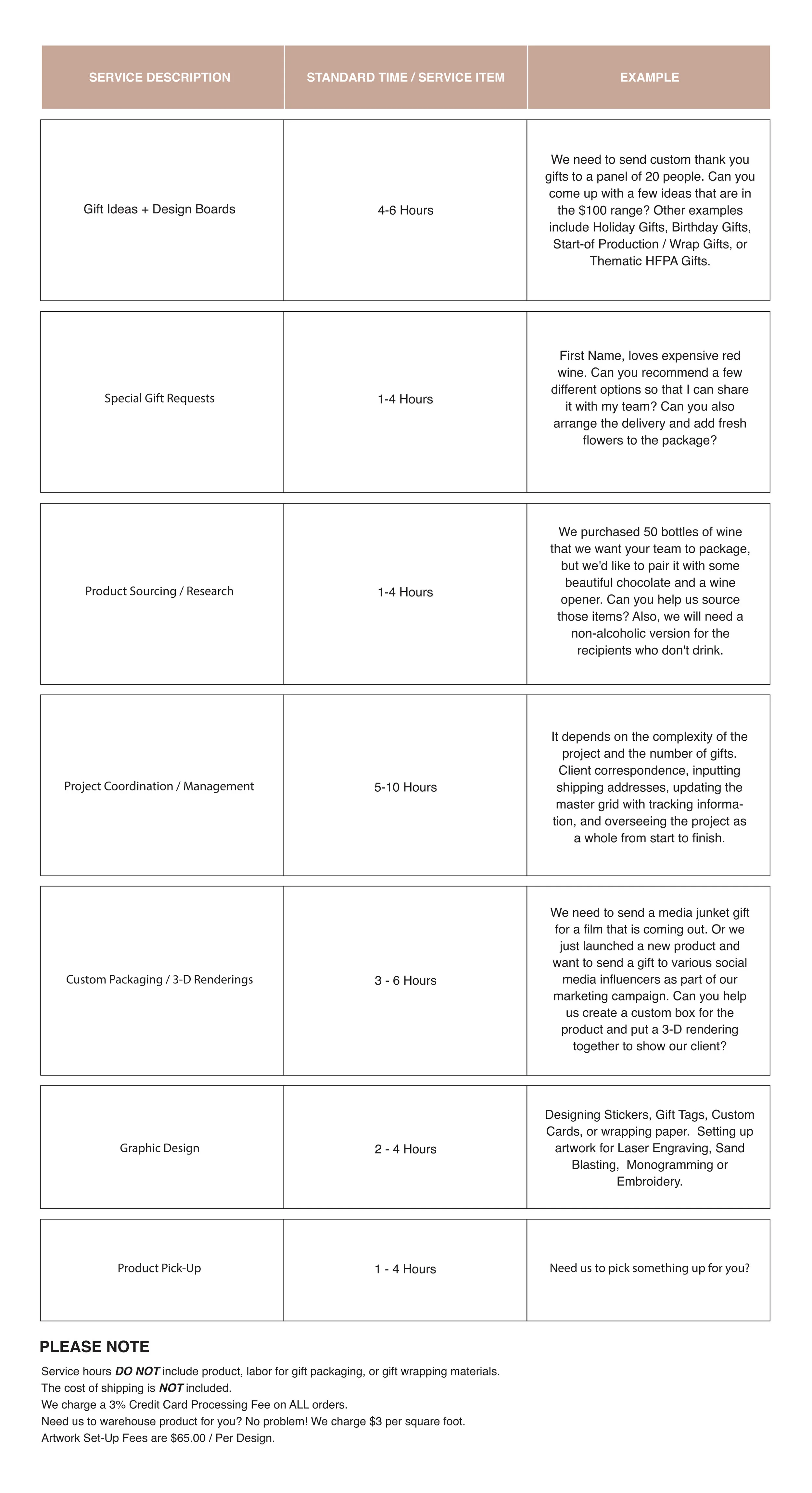 Here is a brief breakdown of how service hours are allocated. Every project is different, so we like to offer a range of how long tasks typically take to complete. Any unused hours will be rolled over and expire within 60-days. Additionally, we have provided examples to explain the different situations or cases where you may or may not need assistance with gifting. We have seen it all (dare, I say that), so nothing is not possible. Need help? Just email or call us directly. We are here to service you.